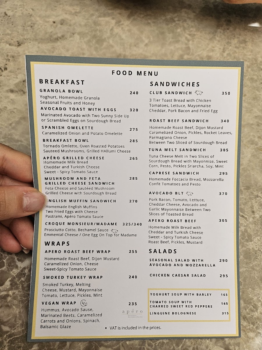 Customer experiences speak volumes about the charm of Apéro. One satisfied patron, Nikos M, proclaimed it a “superb spot” while praising the “amazing sandwiches” and “superb coffee”—an endorsement that reflects the universal appeal this café has cultivated. The atmosphere is characterized by a cozy, bistro-style vibe that invites conversations and connections, as noted by F. Korkmaz Perk, who appreciated the quality of ingredients and the lovely breakfast options on multiple visits.